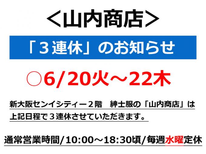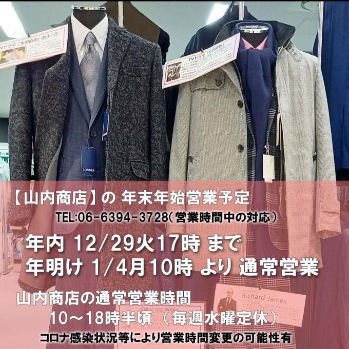 年明けは1/5木から通常営業させていただく予定ですのでよろしくお願いいたします。アウトレット高級紳士服「山内商店」