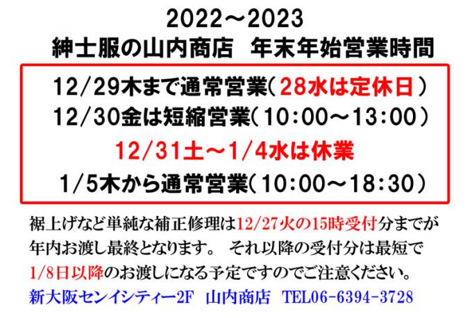 2022~2023年末年始営業時間のお知らせ/山内商店