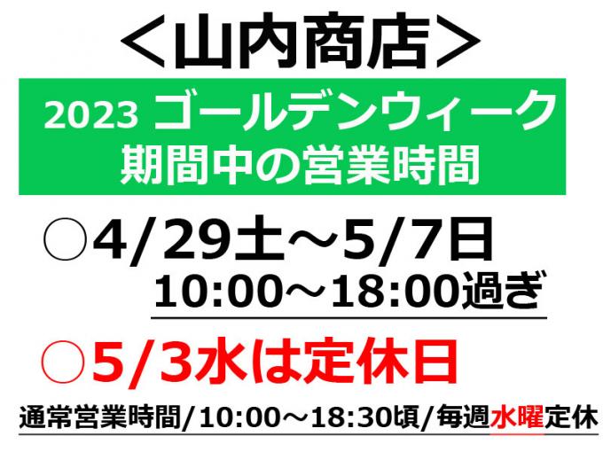 2023 ゴールデンウィーク期間中の営業時間/山内商店